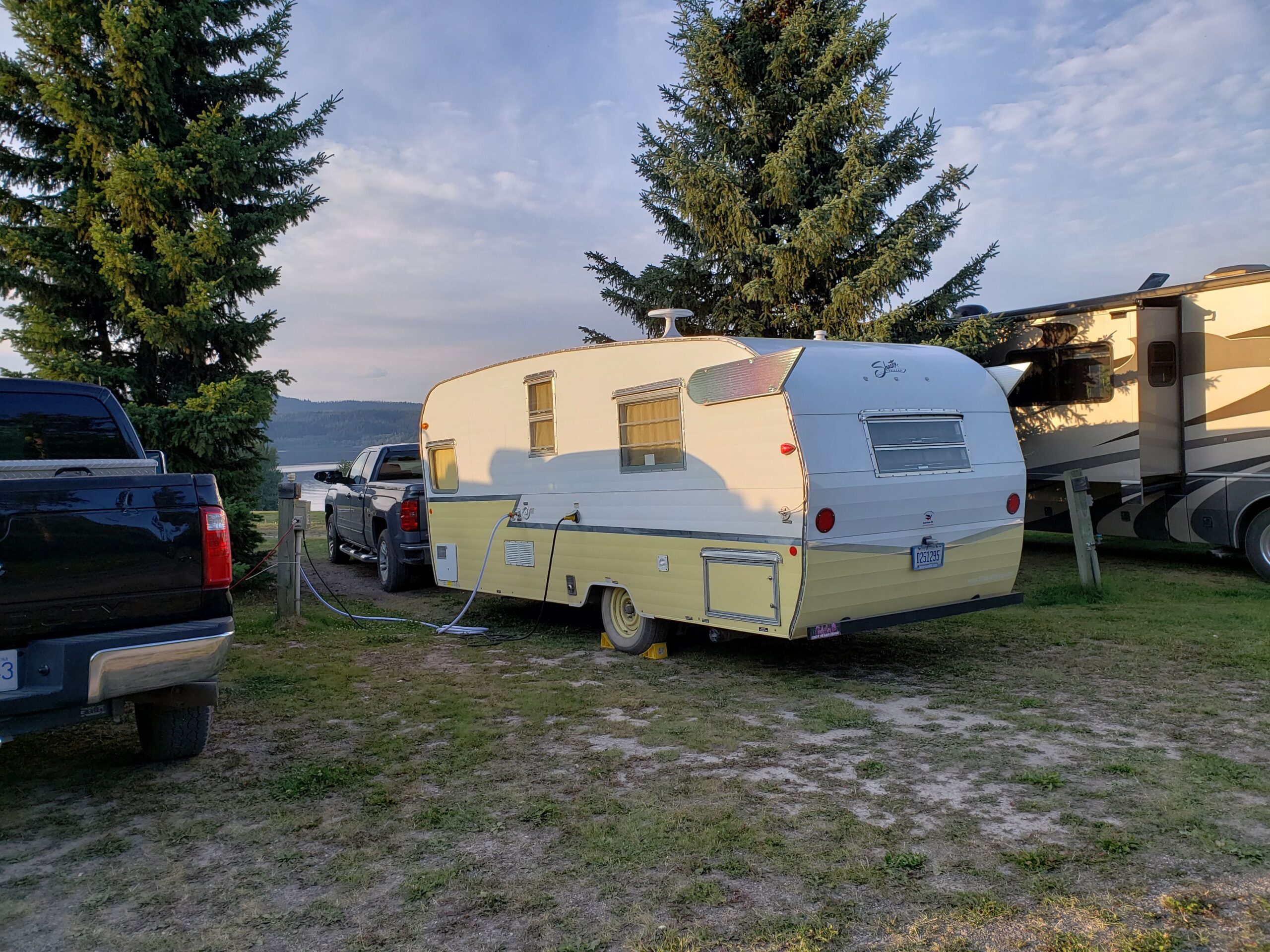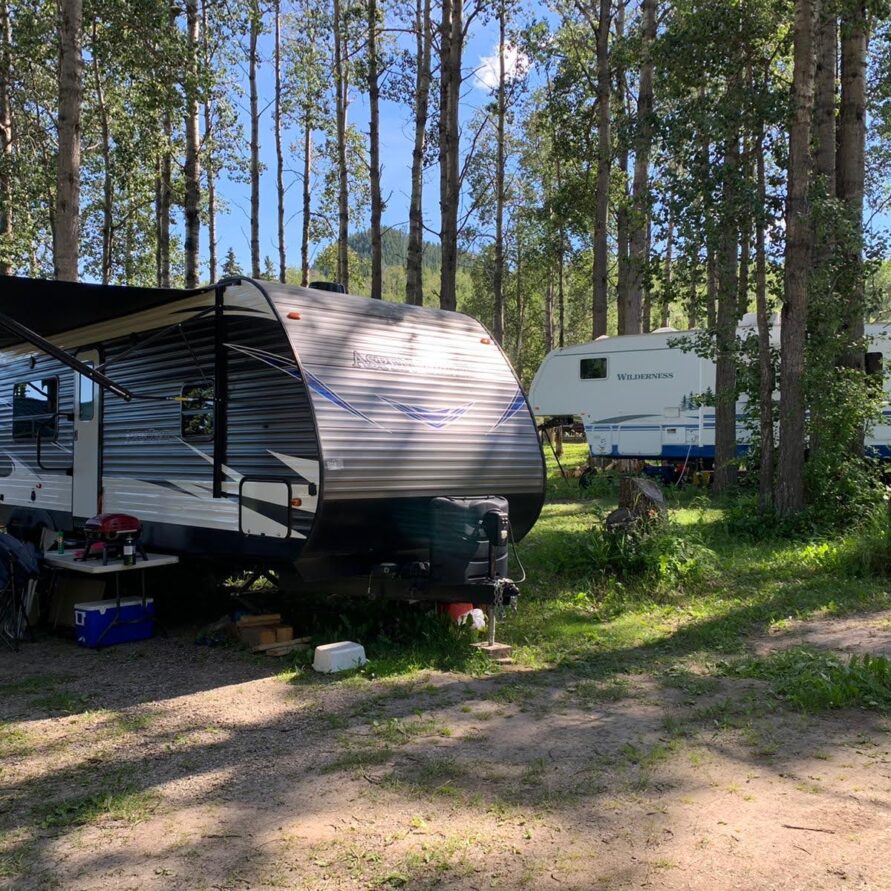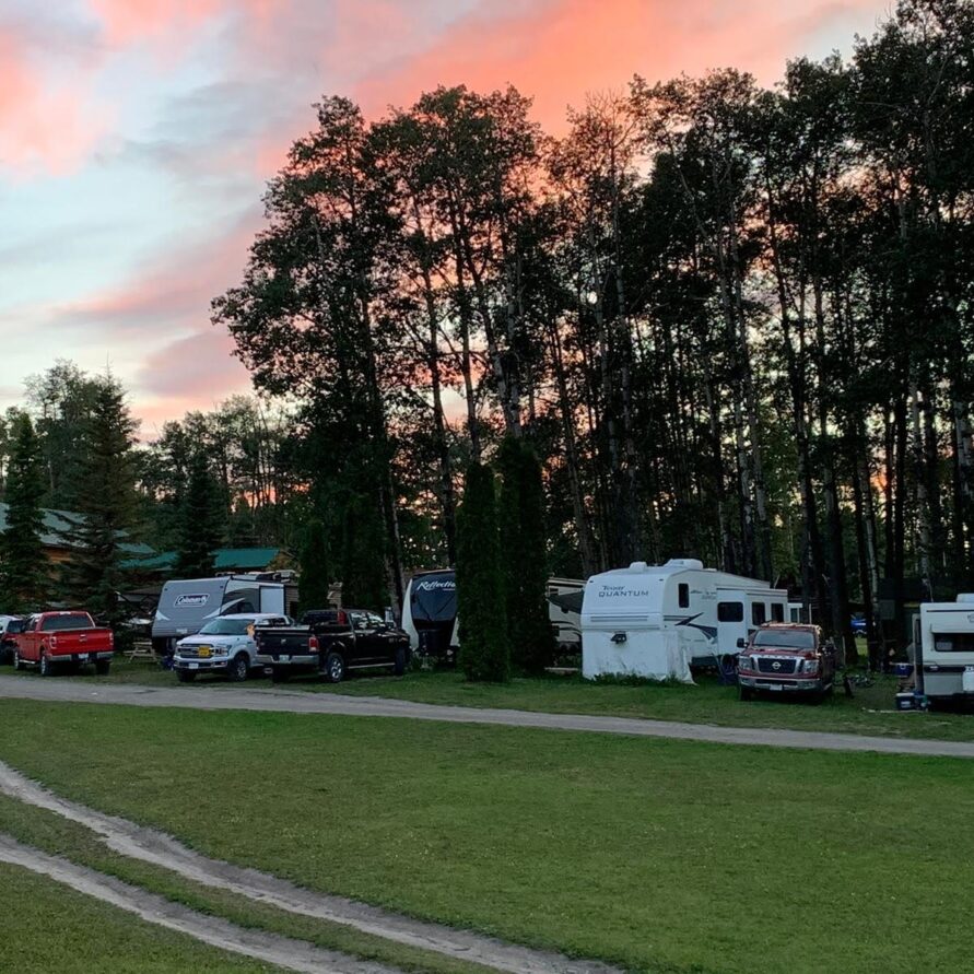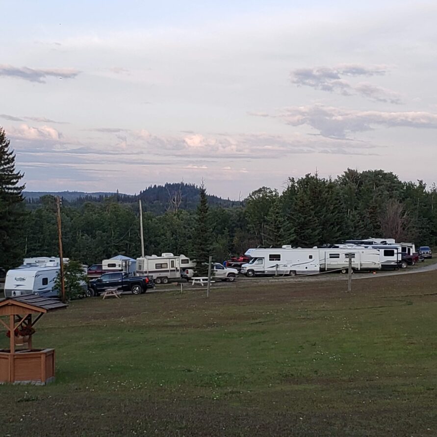 Full Hook-up RV Sites overlooking beautiful Fraser Lake featuring 30 amp electrical service, water, and direct sewer connections.
