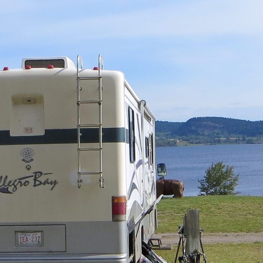 Full Hook-up RV Sites overlooking beautiful Fraser Lake featuring 30 amp electrical service, water, and direct sewer connections.